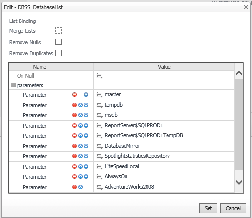 We’re going to need to parameterize the databases. Remember, when you think “selection” on a report, we’re generally referring to “parameterized input”. Instance name will be one of our inputs, and time period will be another. We need a third – a list of databases that we can revise or provide every time the report is generated. A second parameterized input is needed.