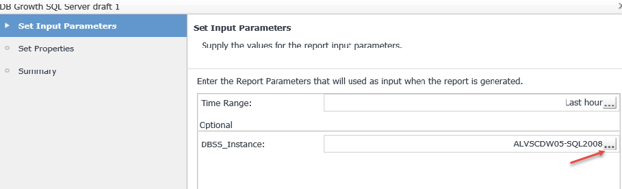 Clicking the ellipsis button allows selection of any SQL Server instance that we’re monitoring with Foglight.