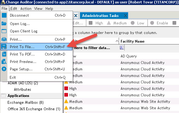 I’ve been asked many times for a list of events Change Auditor can produce for all modules so I thought it would be a good idea to share the list I have produced in Excel and also explain how you can create your own. Before I get into the details, keep in mind each Change Auditor module has its own PDF with a list of events. The PDF can be found in the Change Auditor documentation. If all you need is a list of events for a specific module that may be an easier route to take. If you would prefer to search for an event within the Change Auditor client, you can do so. The purpose of this post is to provide an “offline” version of the same event list. With that said, if you need an Excel spread sheet with ALL Change Auditor events, read on.