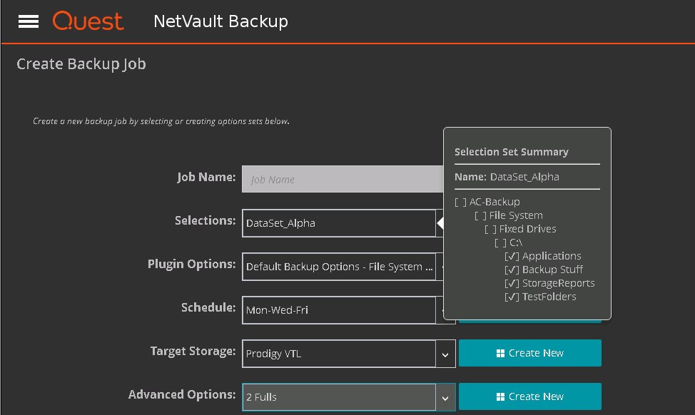 You can now preview Selection Sets for Backup and Policy Jobs. This makes it much easier to preview what you have selected without having to go into the set creator.