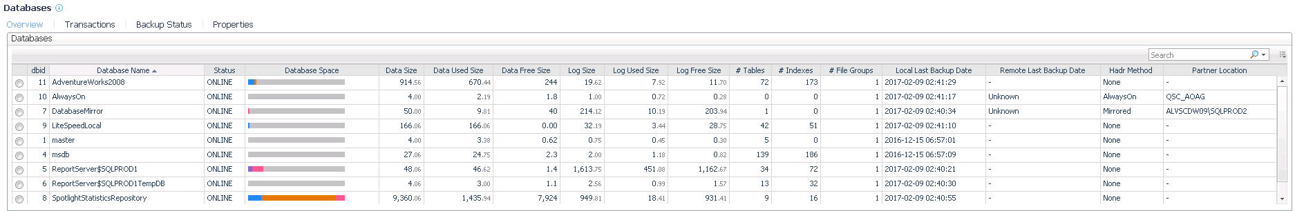 - SQL Server Databases Dashboard – Now provides high availability configuration for each database, including the last backup date on a mirrored server (if it exists).