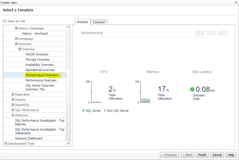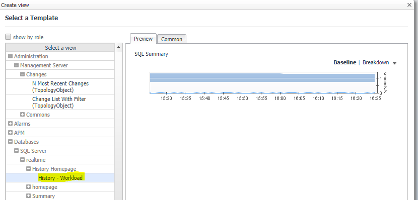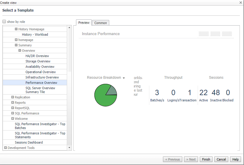 We will start with view because here we can choose from a range of pre-packaged views that are relevant to the instance such as: