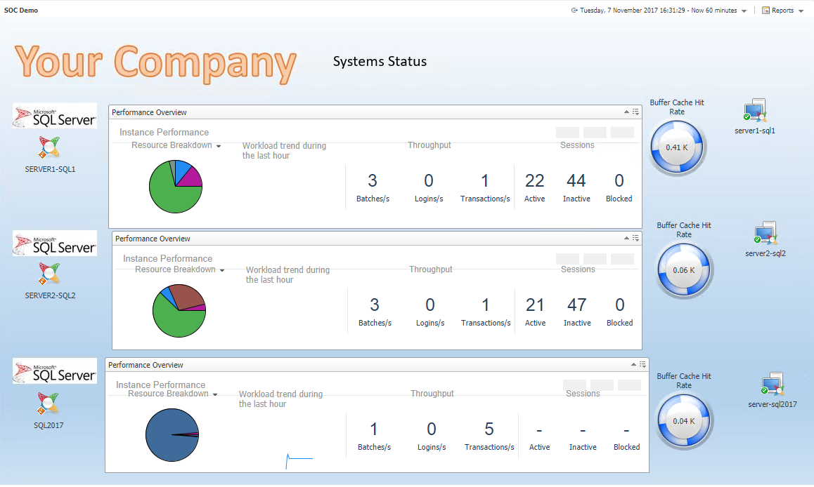 What the customer wanted was to create something specific for his company. He liked the database main dashboard but wanted to choose a specific number of instances (the important ones) and show specific visualisation icons that he had seen in the drill downs.