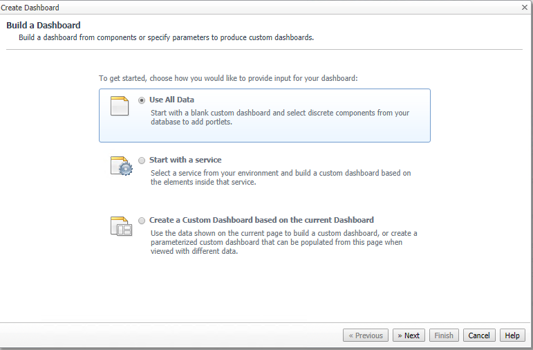 In Foglight create a new dashboard from the right hand drawer menu. Use all data.