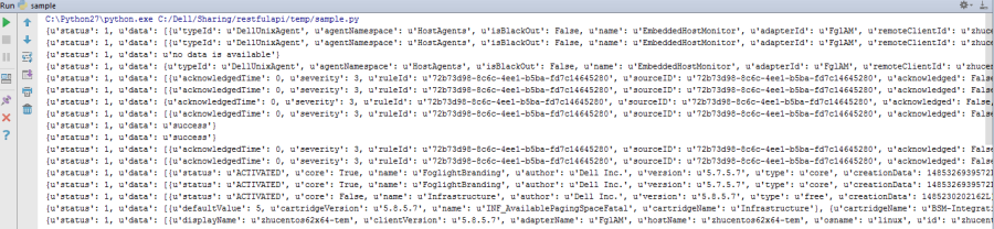 After saving your configurations, run the sample script (sample.py). The response should be like the following format.