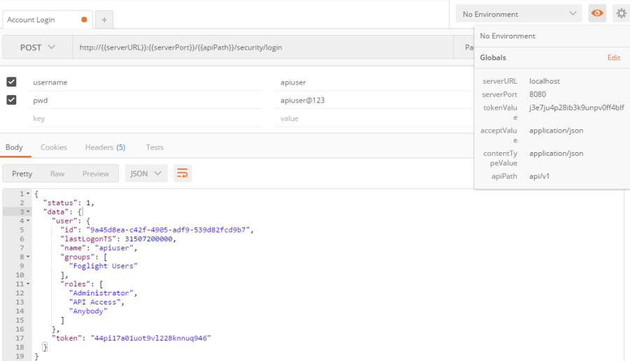 Note: The token in the response will be used to access REST APIs. Keep it somewhere safe and secure.