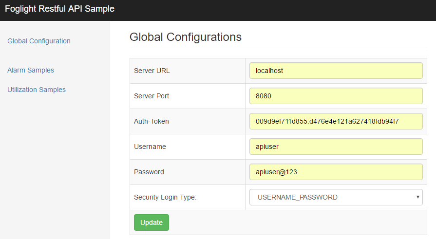 Click Update to enable the configuration, then you can check other samples on the left navigation panel.