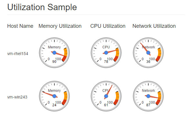 The following shows the sample about how to operate with Topology-related APIs to display CPU, memory, and network utilization for each host server.