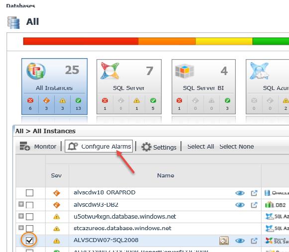 If you’re monitoring databases, you’ll need to set up email notifications on rules/alarms from the Databases dashboard’s ‘Configure Alarms’ screen: