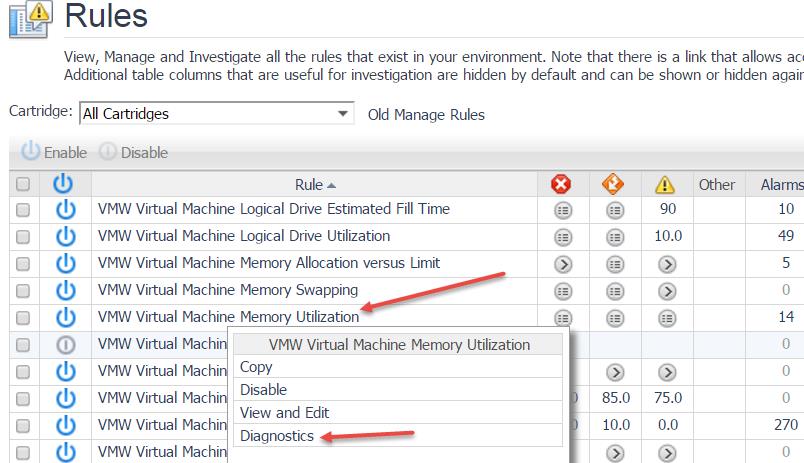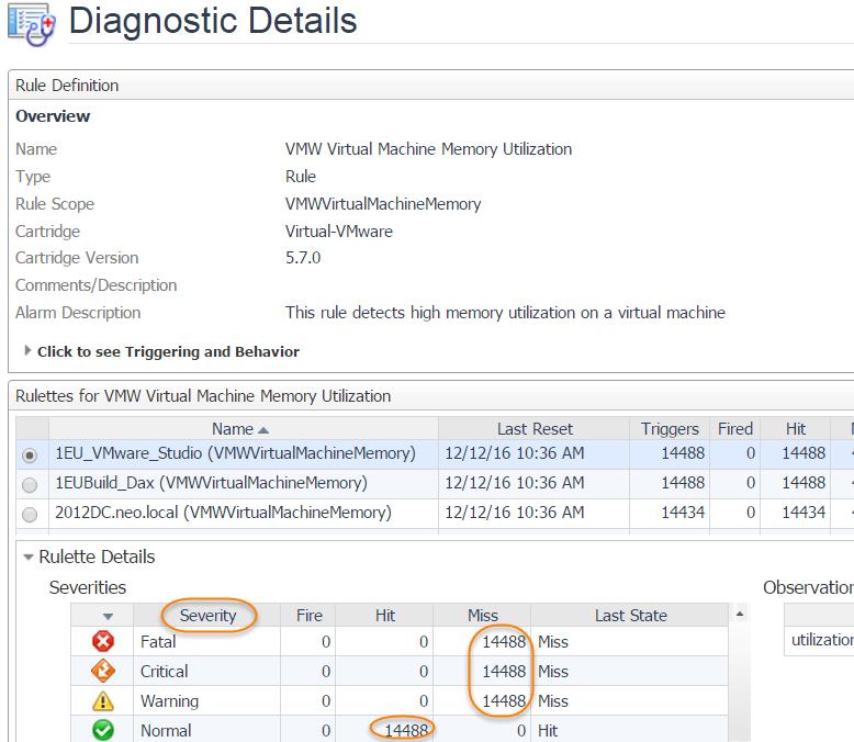 The ‘Rule Diagnostics’ screen shows the last time a rule fired an alert, and the number of times each severity of that rule was ‘hit’:
