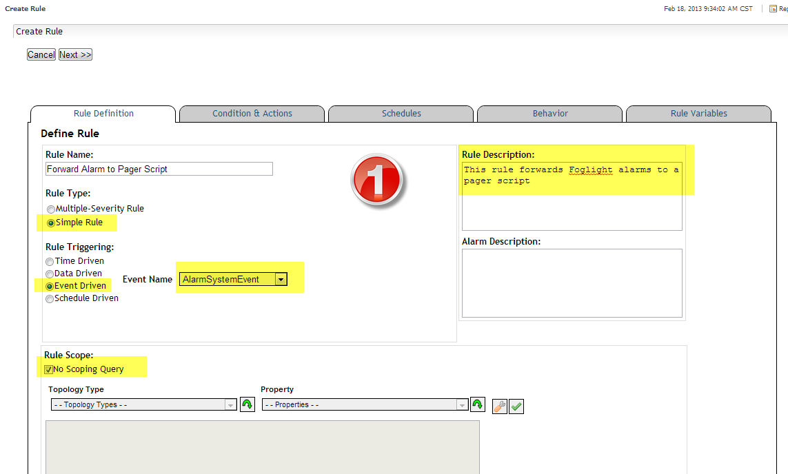 A customer would like to forward alarms from Foglight with all the appropriate information, such as alarm time, source, severity, message, and the rule name, to a pager script which in turn pages the on-call DBA.