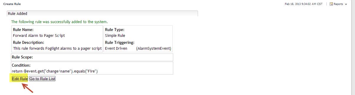 - Now we need to edit the rule to add severity variables and command action. Click Edit Rule.