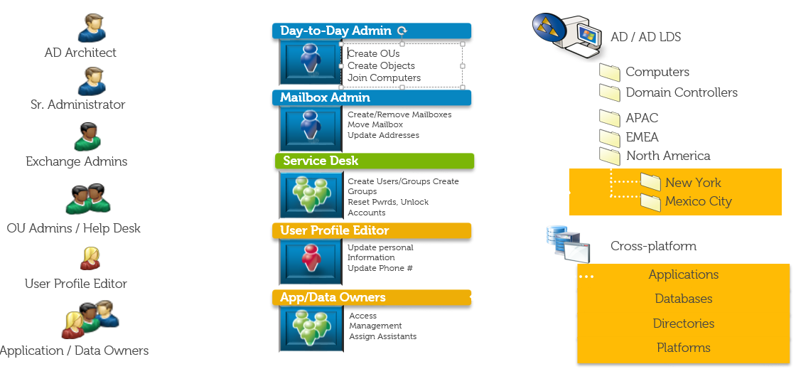 Now that we have identified who should be able to do what, we can implement our new model. Some may choose to do native delegation, many others will consider products from Quest Software that enhance what you can natively do. Quest Software provides products that can do more granular delegation across your workstations, UNIX/Linux environments, GPO’s and Active Directory environments.