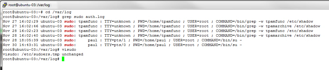 Figure 3- There are many variations of UNIX and Linux. As an example, on Ubuntu you can look in the /var/log/auth.log and see what actions have been performed across a box.