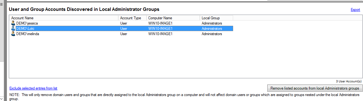 Figure 11- Privilege Manager for Windows allows you to remove members from the local administrator group.