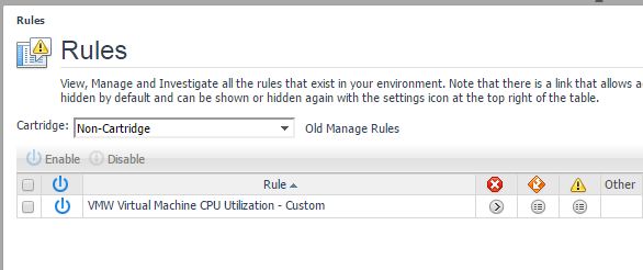 Step 2: Many times, an administrator will only want a subset of alarms sent to their mobile device — typically, the most crucial alerts in the environment. After those alarms have been identified, find the rules at the source of those alarms, and make of copy of them. Rules are found under Dashboards > Administration > Rules & Notifications > Rules. Remember, that after making a copy of a rule, the copy will be found in the “Non-Cartridge” cartridge within Foglight.