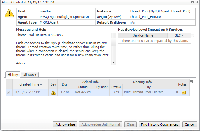Drilling down (clicking) on the alert about Thread Pools, I saw this: