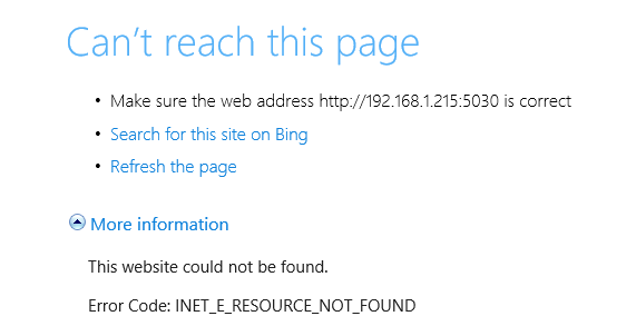 The following screen shots can appear, if the port is open, but the request is rejected for another reasons, for example the return content is not a web content which can be displayed in a browser: