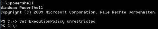 A requirement to use PowerShell scripts is to allow their execution. To do so the command “Set-ExecutionPolicy unrestricted” must be executed within the PowerShell command line. The possible parameters are: