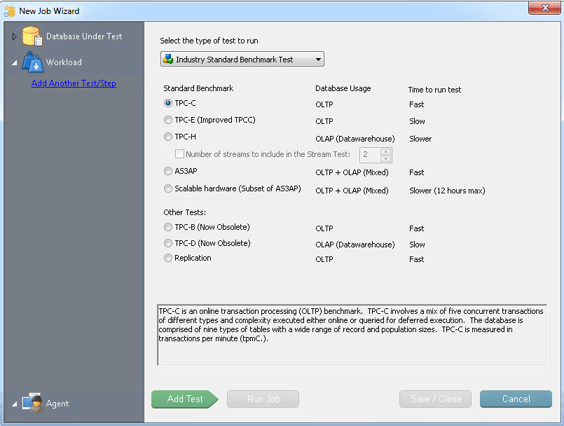 Benchmark Factory has a number of industry standard tests that are pre-packaged and ready to run, or you can collect and run your own SQL workload. This makes it easy to contain the workload and replicate it as many times as you need to. That allows an apples to apples comparison for step 4 – comparing the workloads from before and after the patching. In the example for this blog, a TPC-C test was used with a scale factor of 4, and user loads of 1-4 incremented by 1. All of these parameters are easy to set in the product.