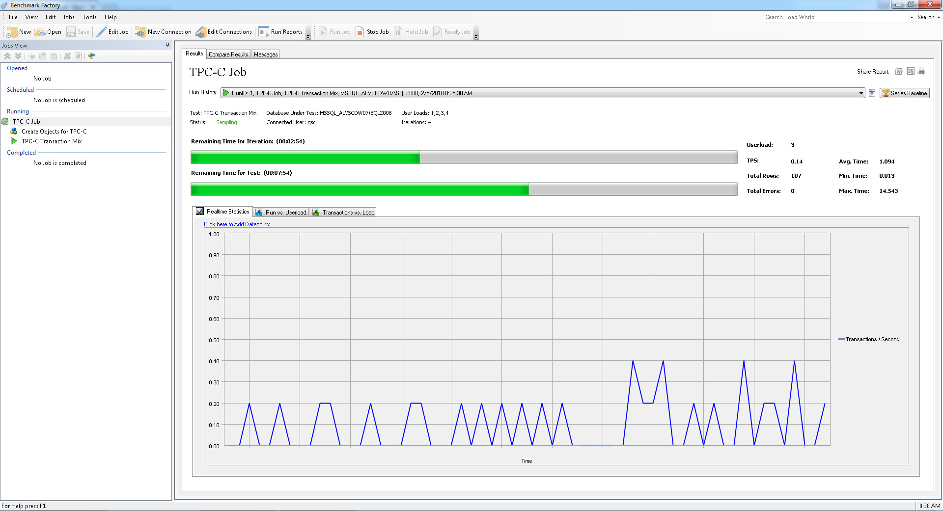 Once the load test parameters are configured, the job is run and a real-time status panel is shown.