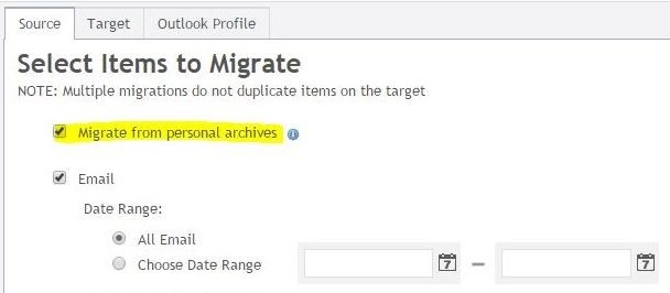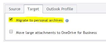 Note: “User Archive” mailboxes will need to be created in the target Exchange or Office 365 mailboxes before selecting this option as the migration destination.