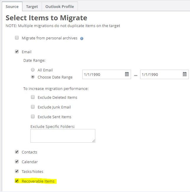 The better news is that ODME is now able to migrate Exchange Recoverable Items as well. You can now have the best of both worlds, a simple to use, cloud-based migration platform, that can also assist in maintaining compliance with legal and regulatory requirements by migrating Recoverable Items.