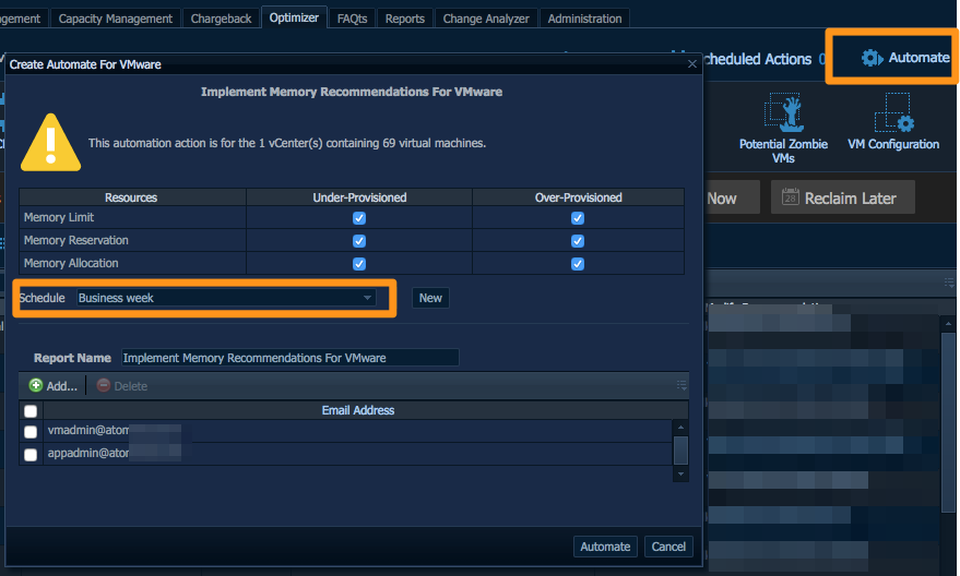 CPU and Memory right-sizing tasks can be easily automated with Optimizer to ensure resource allocation is always met with application demand.