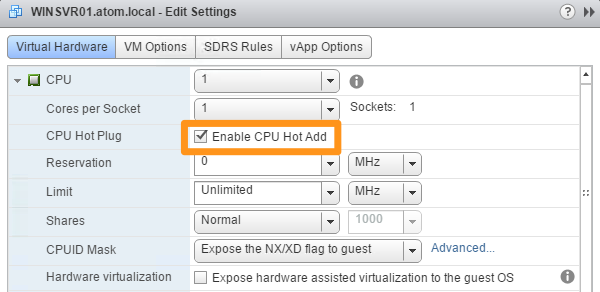 Once this function is enabled, sysadmins will enjoy being able to add resources to virtual servers with no down time, and of course – business will appreciate this.