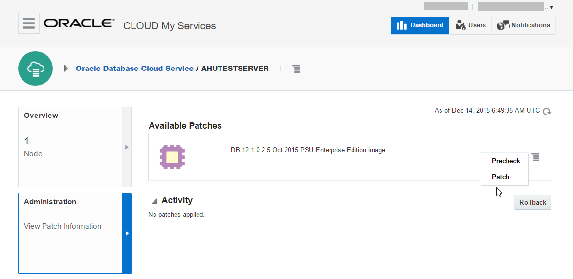 Using an example date – if on December 2015, if this screen tells you “No patches available”, it means the cloud database is on the latest October PSU, which should be fine. If it shows the October PSU on this screen, then it means the cloud database is on the earlier PSU, so you should apply the October PSU first on the database.