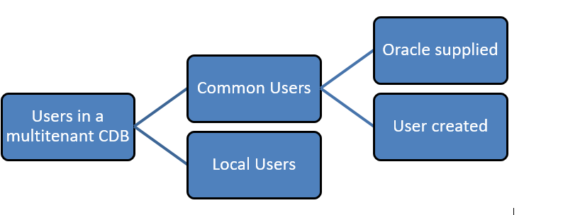 Prior to Oracle database 12.2.0.1, there could be following types of users in an Oracle multitenant container database (CDB)