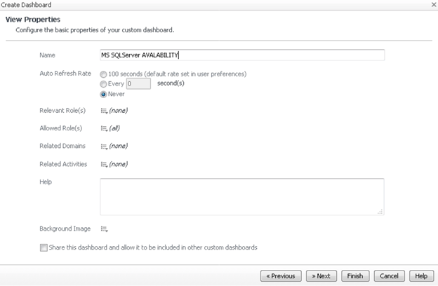 Step 3: Name the dashboard, choose a refresh rate, choose who can have access > Finish