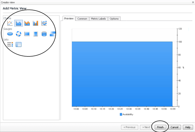 Step 6: Choose how to display the data. Note all of the available options. Since my example involves Availability data, I am choosing an Area Graph > Finish.