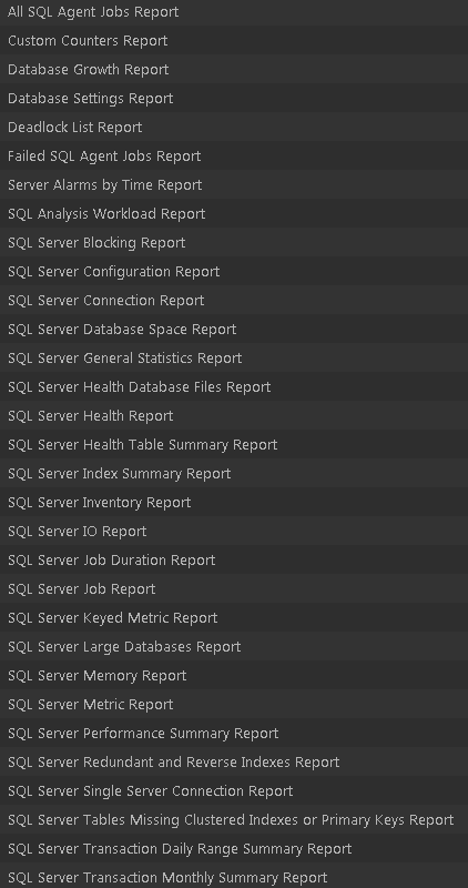 Here is a sample subset list of Spotlight reports and a sample Database Growth report.