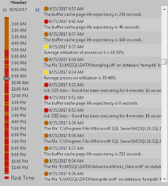 Navigating by either an alarm list or by a vertical time bar, users can easily choose a point in time to diagnose problems and not be otherwise stuck because the problem already happened.