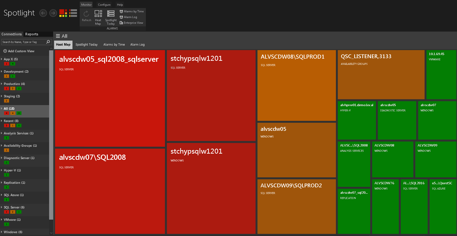 In April of 2016, upon engaging with a customer, we learned that the DBA team for the hospital managed an environment of over 70 SQLServer instances and had trouble keeping up with the ‘fires’ and reacting, as end-users reported performance issues. After a Spotlight ‘Lunch and Learn’ session, the team eagerly agreed to re-discover the Spotlight solution and start using it. A couple of Q & A sessions with the team followed over the next several weeks. The customer was pleased with Spotlight and communicated their commitment to Spotlight as their SQL Server database monitoring and diagnostics solution. Additionally, they provided some positive feedback. A Database Analyst on the team gave us permission to quote him.
