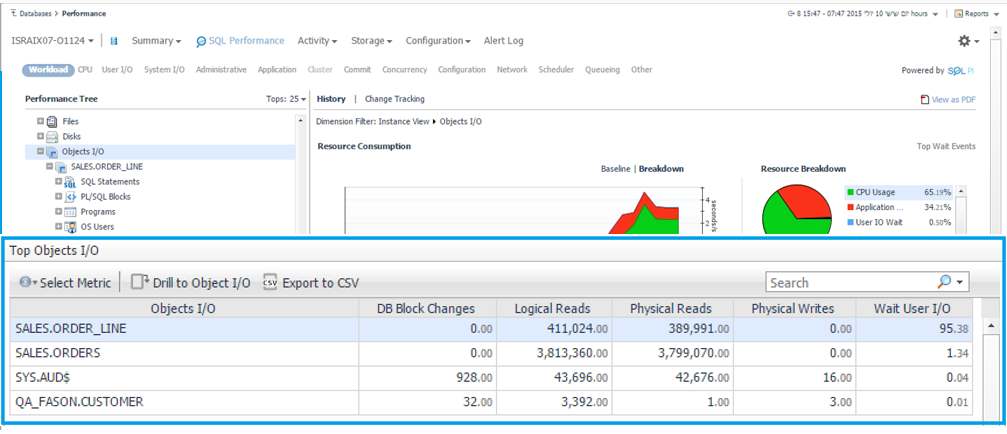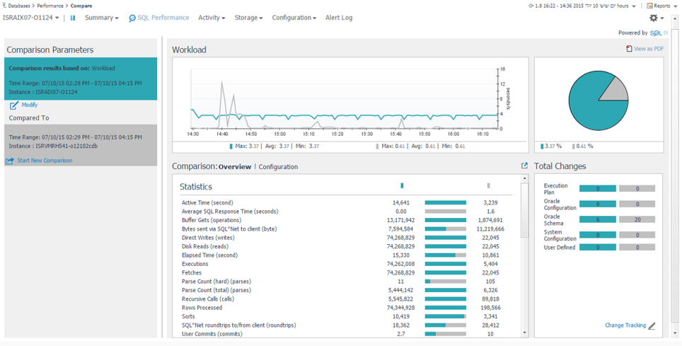 Fig 2 – Comparing Workload Statistics between Production and Pre-Production DB Instances
