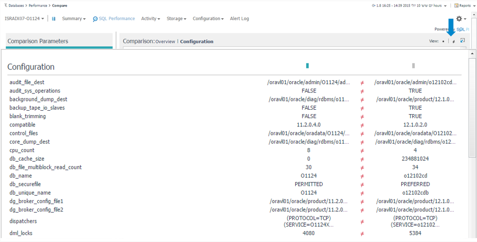 Fig 3 – Configuration Differences between Production and Pre-Production DB Instances