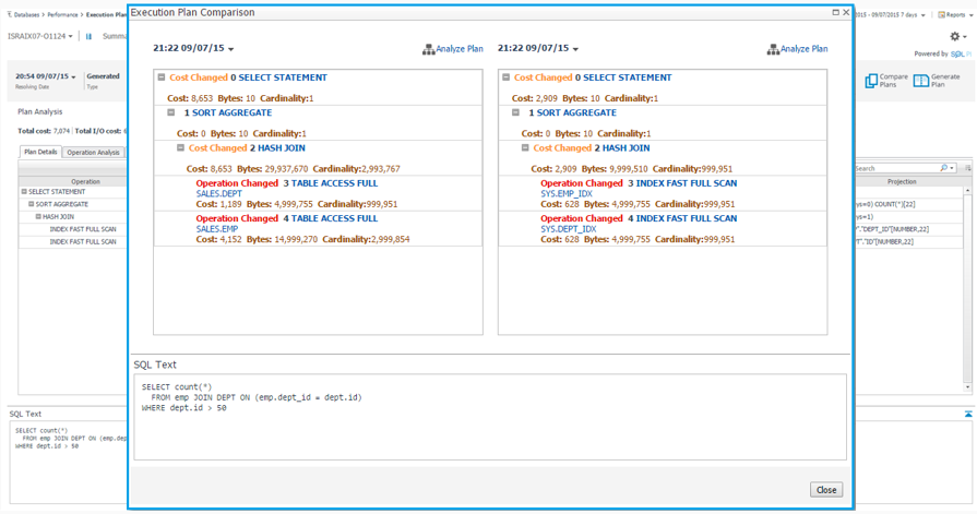 Fig 6 – Execution Plan Comparison for a specific transaction