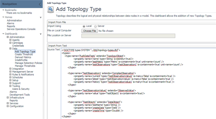 Login to your Foglight and navigate to Add Topology Type at “Administration -> Data -> Add Topology Type” and import your new topology types to Foglight as below.