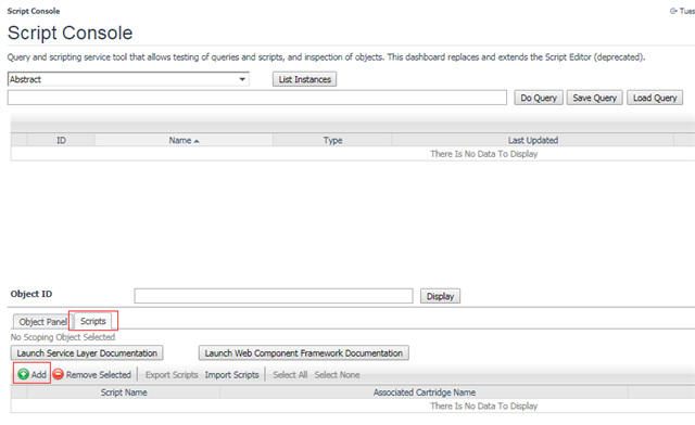- Navigate to “Administration -> Tooling -> Script Console”, switch to “Scripts” tab and click “Add” button to open the “Run Script” window.