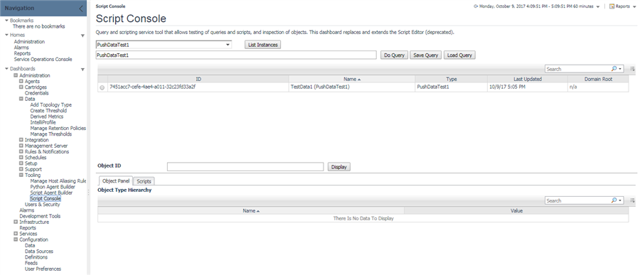 - Then you can find the new pushed data by listing instance with its type name from “Administration -> Tooling -> Script Console” as below.