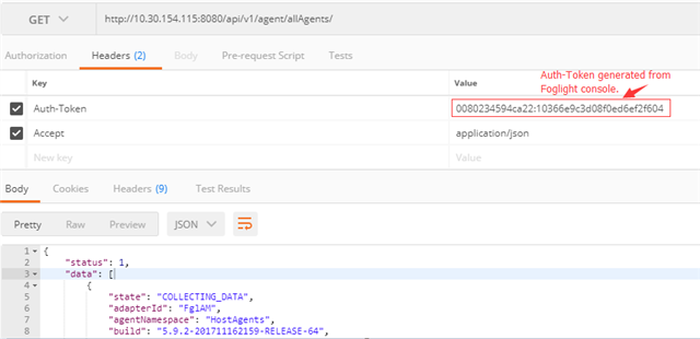 - Open Postman and request for this new REST API you just added to Foglight as below. We suppose you’ve already get the access-token through Security Login REST API.