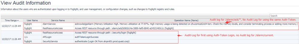 Before 5.9.2, Foglight generates an audit log for each REST API request.