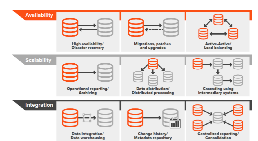 SharePlex is the best data replication tool. Out of the box there are nine use cases that can be combined in many different ways that include integration, scalability and most importantly availability.