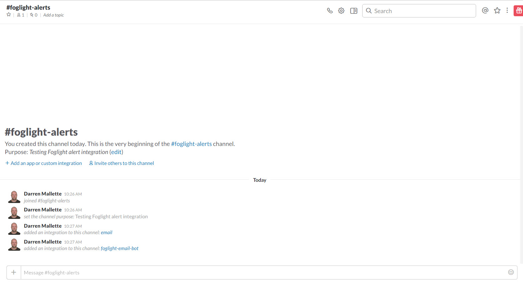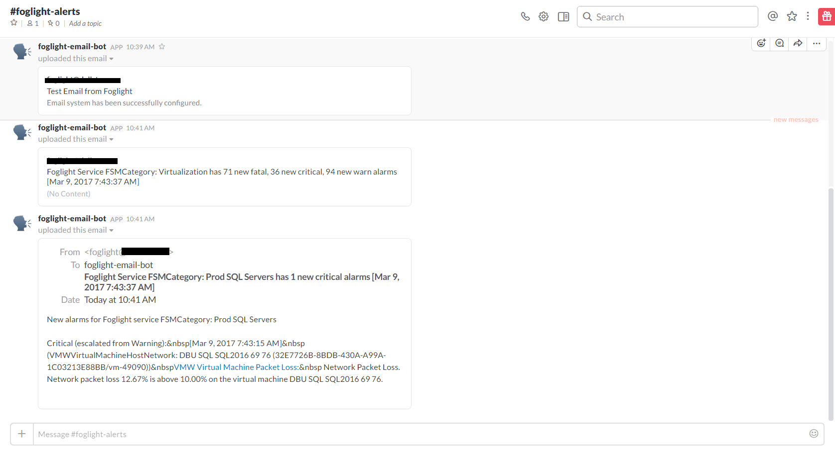 Once alarms are raised in Foglight, you will see them appear in your slack channel.