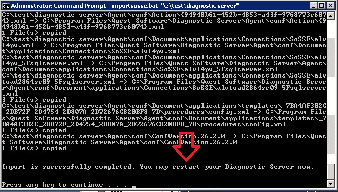 a.  Stop Diagnostic Server services on the destination server. Open CMD console using “Run As Administrator” option. Change directories Diagnostic Server installation folder. By default: to C:\Program Files\Quest Software\Diagnostic Server\Agent\Bin\