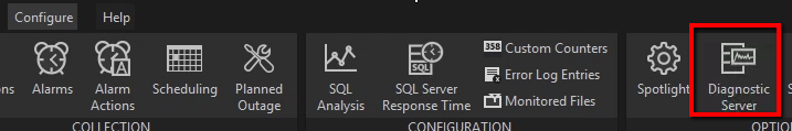 To create the repository, navigate to the Configure->Diagnostic Server menu: