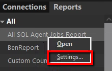 You can change the path Spotlight uses to search for reports. To do this, right-mouse click on any report in the list and choose “Settings” and select the relevant directory: