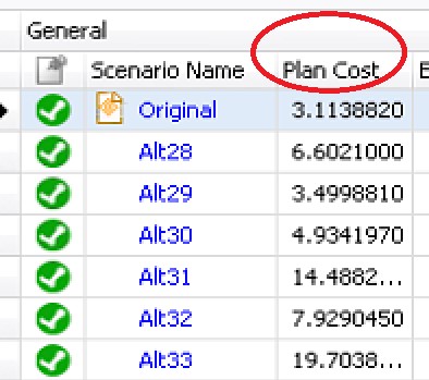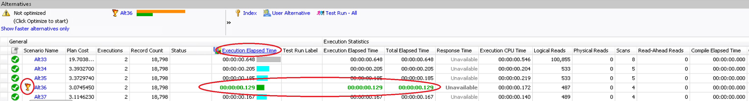 You will see a trophy next to the best alternative chosen by SQL Optimizer based on your performance criteria.